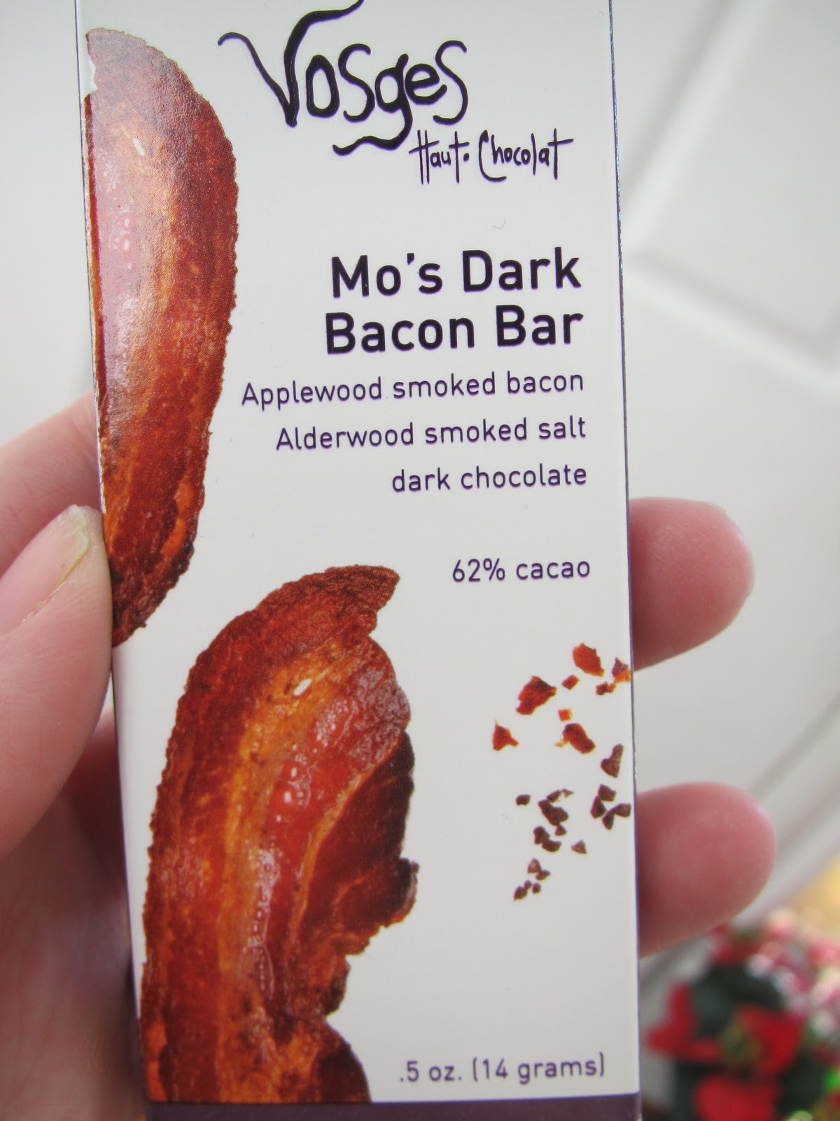 Also, I wanted to thank La-Tessa for sending me the best thing ever invented: Chocolate Bacon.